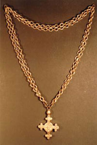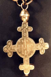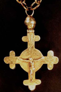 Das Kreuz ist hohl und kann aufgeklappt werden. Allem Anschein nach war es ursprünglich ein Reliquiar, d.h., es war zur Aufnahme von Reliquien bestimmt. Daraus läßt sich schließen, dass es aus kirchlichem oder klösterlichem Besitz stammt. Lange Zeit wurde seine Entstehung aufgrund der künstlerischen Gestaltung in die Mitte des 18. Jahrhunderts angesiedelt, wobei der Korpus, der für derartige Kreuze untypisch ist, nachträglich aufgebracht sein könnte. Sein Übergang in weltlichen Besitz wäre durch die 1803 beginnende Säkularisation von Klöstern zu erklären gewesen.